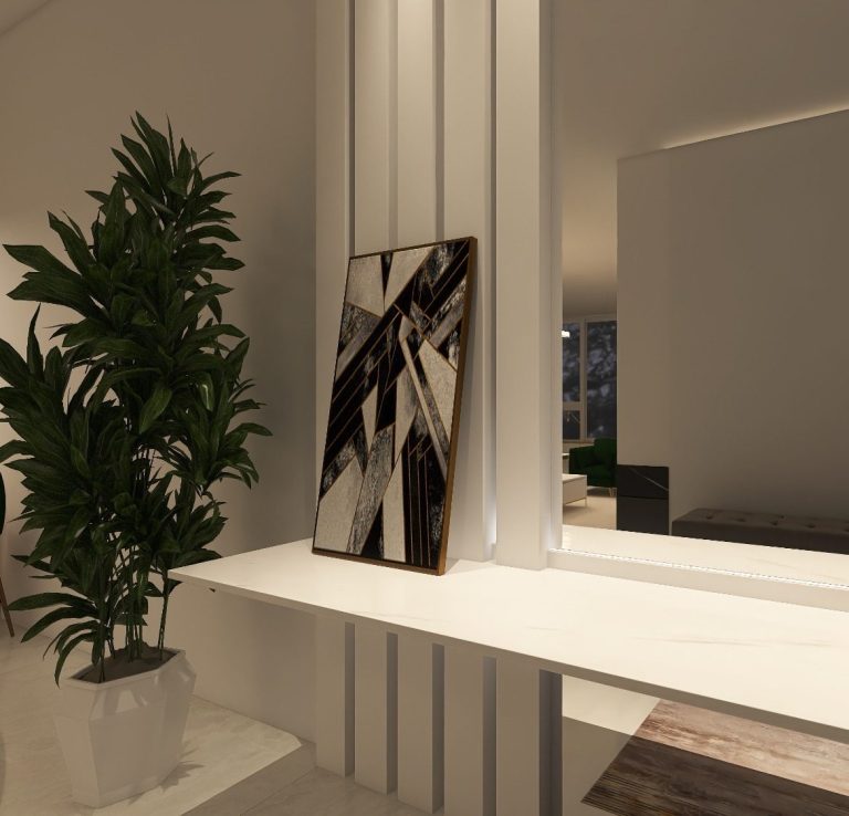 Este proyecto presenta una vivienda de lujo reinterpretada bajo una visión de simplicidad y serenidad, donde cada elemento ha sido cuidadosamente seleccionado para expresar un lujo silencioso y refinado. Los sofás y butacas en tonos verdes esmeralda introducen un matiz de frescura y sofisticación, actuando como acentos cromáticos que contrastan delicadamente con la neutralidad del entorno. Los detalles en dorado, presentes en lámparas, marcos y armarios, aportan un brillo sutil que eleva la composición sin romper la pureza del diseño.